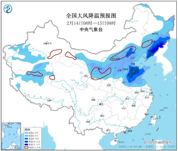 今天冷空氣影響逐漸顯現(xiàn),中央氣象臺(tái)預(yù)計(jì),13-15日、16-17日兩股冷空氣將接連南下影響中東部地區(qū)。其中,未來(lái)三天,受冷空氣影響,長(zhǎng)江以北地區(qū)先后有4~5級(jí)風(fēng),氣溫下降4~8℃,華北北部、黃淮東部、東北地區(qū)南部降溫10℃以上;華北、黃淮以及東北等地的部分地區(qū)有雪或雨夾雪,西南地區(qū)東部和江南西部的部分地區(qū)有小到中雨,局地大雨。