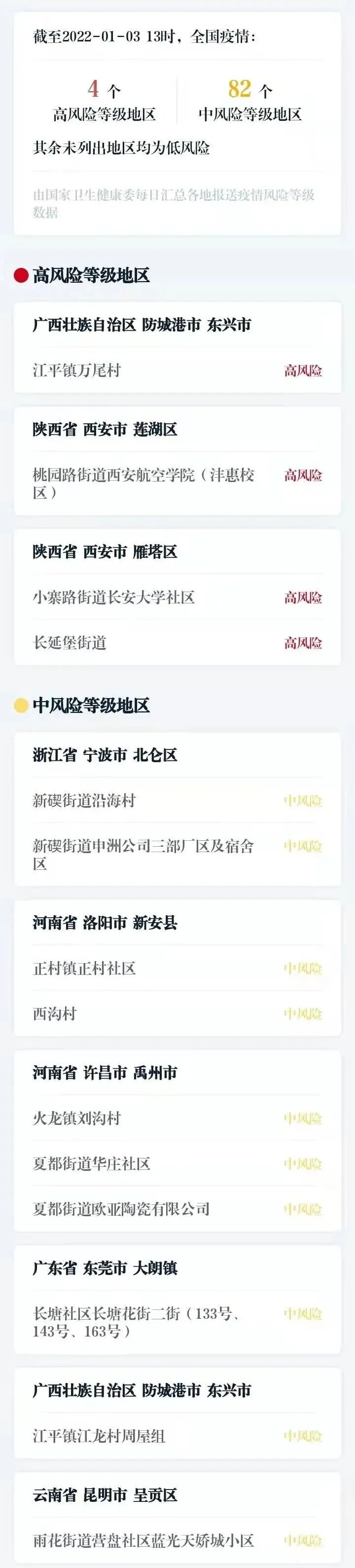 最新疫情中高風(fēng)險(xiǎn)地區(qū)匯總: