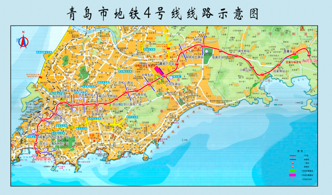 4號線計劃今年年底空載試運行,力爭盡快開通。4號線起于市南區(qū)人民會堂站,止于嶗山區(qū)大河?xùn)|站,全長約31公里,共設(shè)車站25座,其中12座換乘站,將與8條(1、2、3、5、7、8、11、15號線)等已批復(fù)線路實現(xiàn)換乘。
