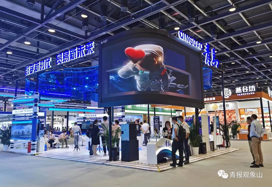 在國家會議中心二期展館,主打科技感、創(chuàng)新感、互動性的青島展區(qū)炫目亮相,通過裸眼3D、交互體驗等一系列創(chuàng)新科技形式,向世界展現(xiàn)這座城市進擊服務(wù)貿(mào)易的新突破、新賽道、新場景。