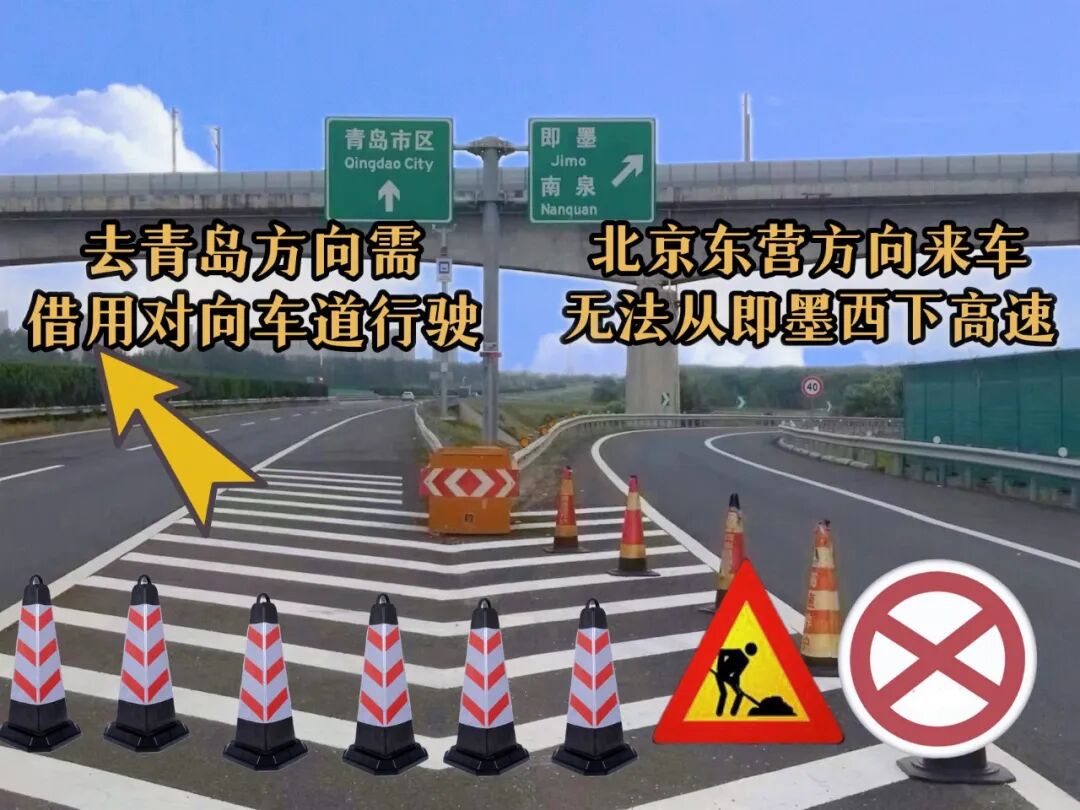 (2)北京東營方向來車去往即墨西收費站出口匝道暫時封閉。青島方向來車可以正常從即墨西收費站出口下高速。