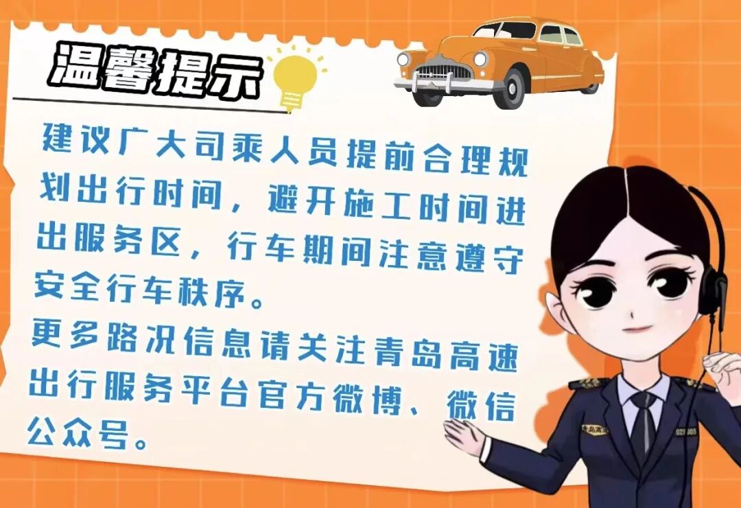司機注意:青島高速出行服務(wù)平臺發(fā)布沈海高速膠州服務(wù)區(qū)、青新高速施工通告