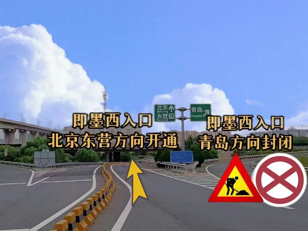(1)即墨西收費站入口去往青島方向匝道暫時封閉。該站入口去往北京東營方向的匝道正常開通。