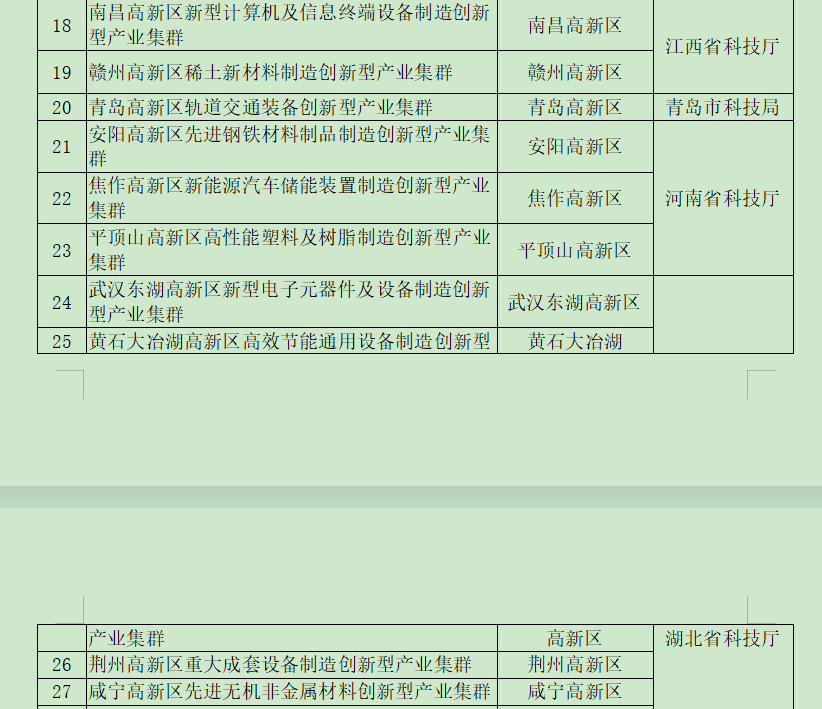 為貫徹落實(shí)《國務(wù)院關(guān)于促進(jìn)國家高新技術(shù)產(chǎn)業(yè)開發(fā)區(qū)高質(zhì)量發(fā)展的若干意見》(國發(fā)〔2020〕7號(hào))和《關(guān)于深入推進(jìn)創(chuàng)新型產(chǎn)業(yè)集群高質(zhì)量發(fā)展的意見》(國科火字〔2020〕85號(hào)),引導(dǎo)創(chuàng)新型產(chǎn)業(yè)集群聚焦重大戰(zhàn)略需求,提升產(chǎn)業(yè)創(chuàng)新能力,打造經(jīng)濟(jì)高質(zhì)量發(fā)展新引擎,參照《創(chuàng)新型產(chǎn)業(yè)集群試點(diǎn)認(rèn)定管理辦法》(國科發(fā)火〔2013〕230號(hào))的有關(guān)要求,經(jīng)建設(shè)主體申請(qǐng)、省級(jí)科技管理部門推薦、專家評(píng)議論證、網(wǎng)上公示等程序,現(xiàn)將天津市濱海新區(qū)海洋工程裝備產(chǎn)業(yè)集群等46家集群確定為創(chuàng)新型產(chǎn)業(yè)集群,納入創(chuàng)新型產(chǎn)業(yè)集群評(píng)價(jià)管理工作體系(名單見附件)。