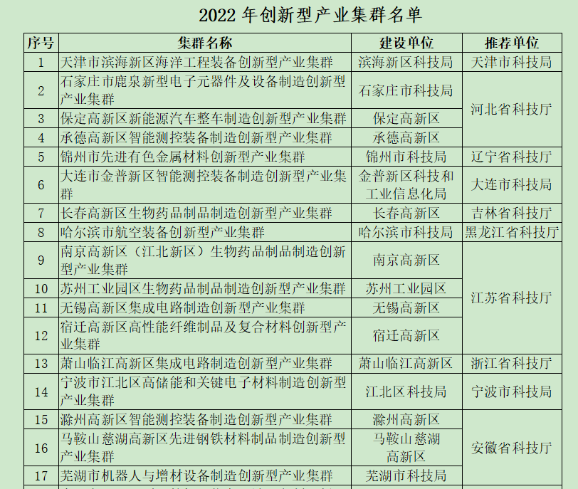 關(guān)于公布2022年創(chuàng)新型產(chǎn)業(yè)集群的通知