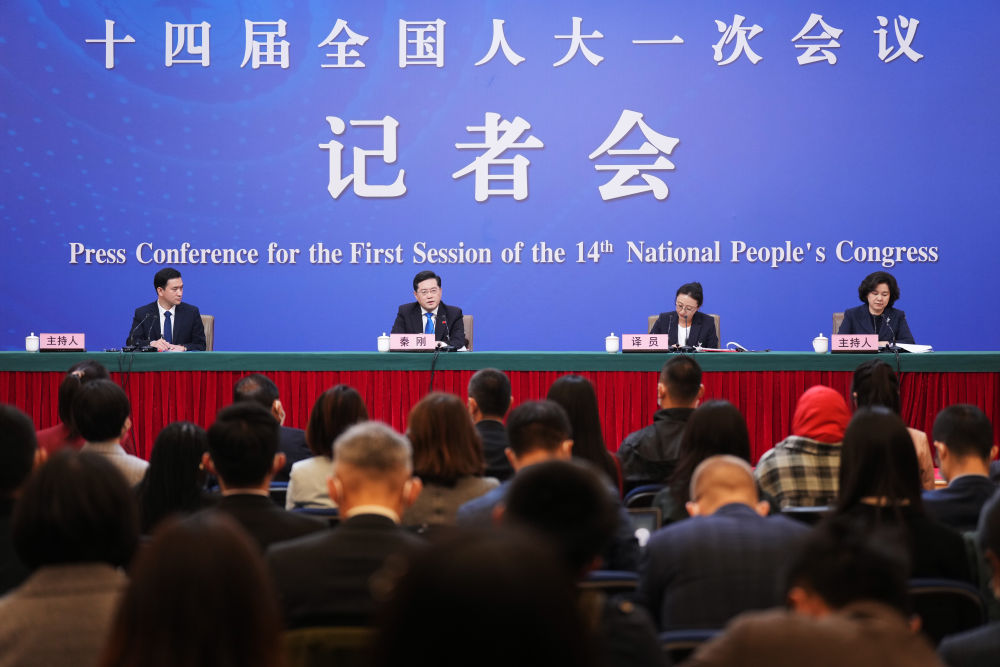 3月7日,十四屆全國(guó)人大一次會(huì)議在北京梅地亞中心多功能廳舉行記者會(huì),外交部長(zhǎng)秦剛就“中國(guó)外交政策和對(duì)外關(guān)系”相關(guān)問題回答中外記者提問。新華社記者 王毓國(guó) 攝
