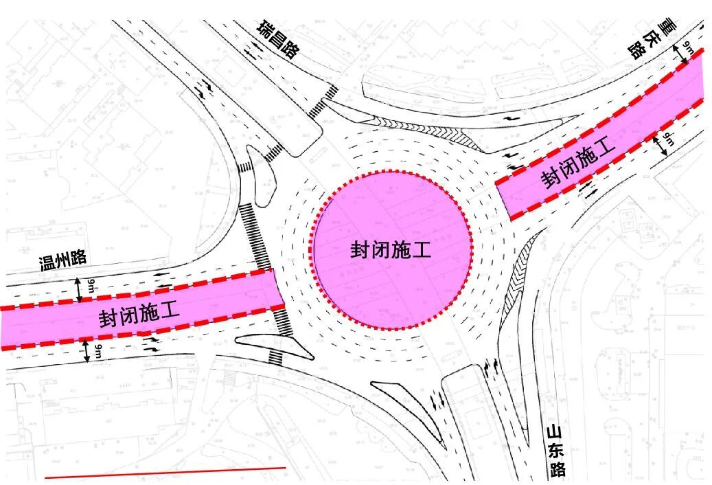 1.原溫州路西向東行駛車輛向北可由杭州路、人民路、鞍山一路行駛至四流南路、南昌路等道路繞行;向南可由杭州路、人民路、鞍山二路行駛至鞍山路、敦化路等道路繞行。