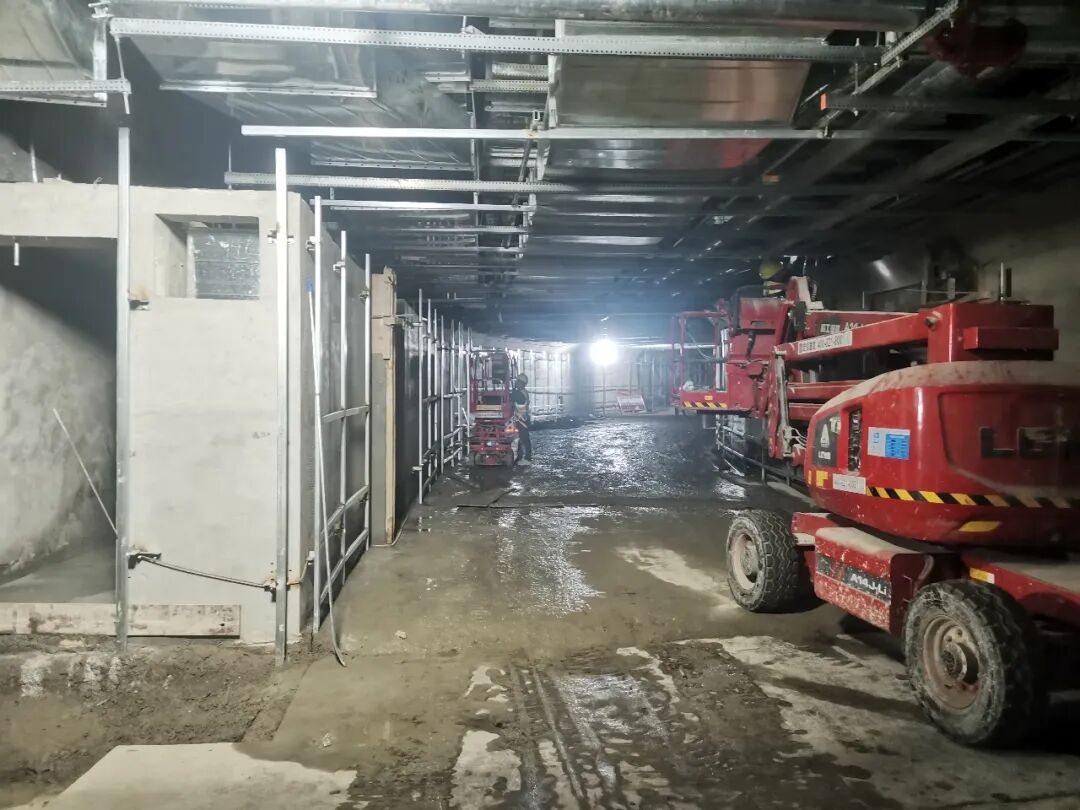 7日上午,記者來到原中山商城中山路出入口看見,原來的出入口已被封閉,原有建筑也被拆除,變身成了一個網(wǎng)紅景觀,夜間會有絢麗燈光。而在老舍公園段原安徽路出入口,原有的商城建筑也被拆除了,新的出入口正在緊張施工當中。進入圍擋,可以看到一個新開通的通道,順著該通道,記者一路前行深入地下。商城內(nèi)原有的門店,都已被拆除,取而代之的是繁忙的施工景象,各類機械往來穿梭,身穿反光背心的工人們,或搬運鋼筋或緊固接口。