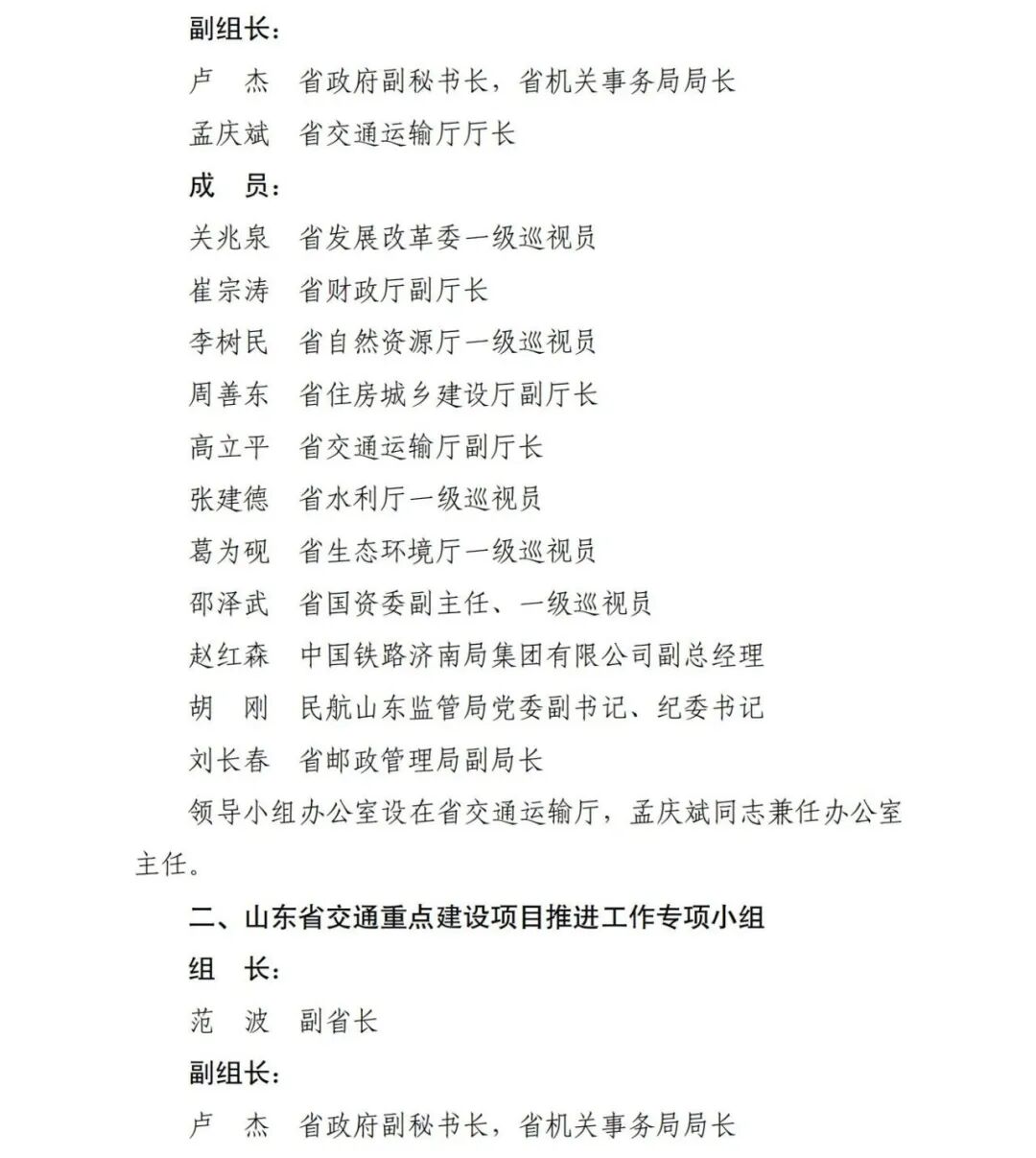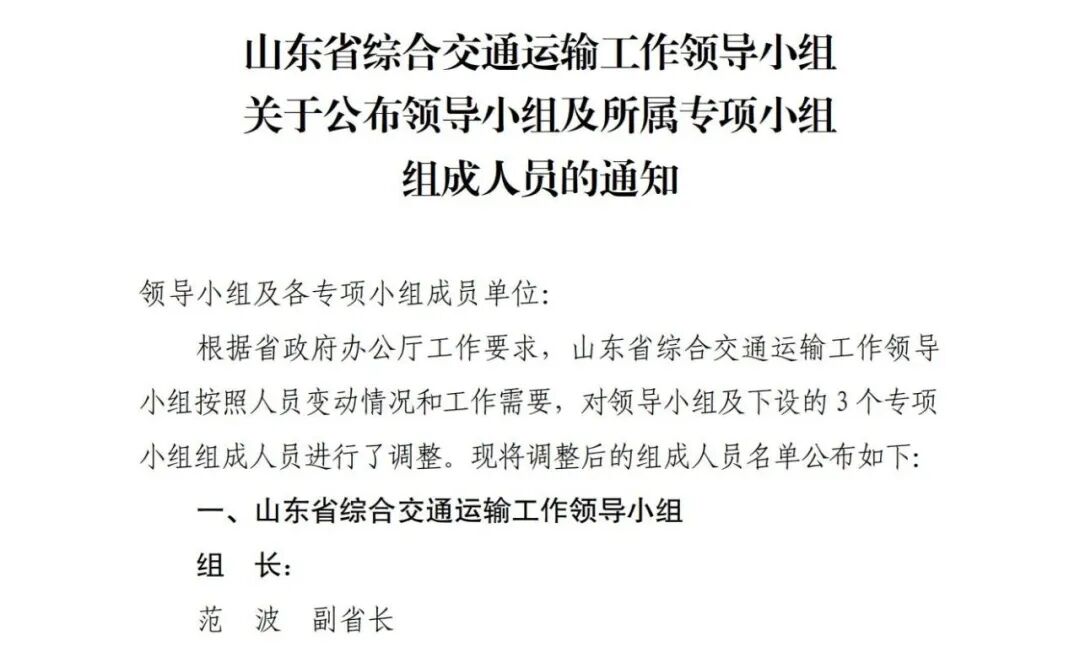 最新名單!山東省綜合交通運(yùn)輸工作領(lǐng)導(dǎo)小組及所屬專項(xiàng)小組組成人員調(diào)整