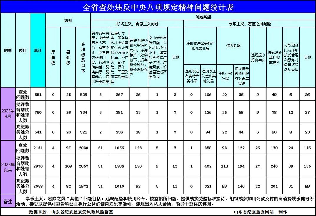 2023年4月全省查處違反中央八項規(guī)定精神問題551起