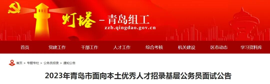 面試人員可于2023年6月15日9:00至6月17日7:00登錄“燈塔-青島組工”網(wǎng)絡(luò)平臺“錄用公務(wù)員專題”內(nèi)“本土人才招錄”鏈接入口打印面試通知單。