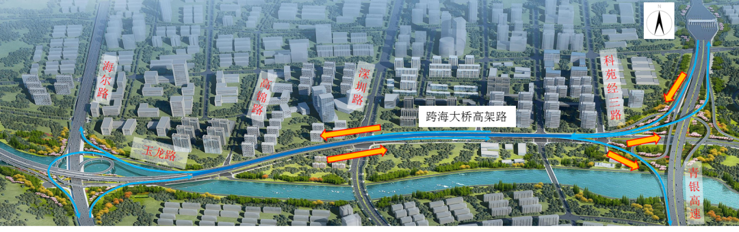 此外,與跨海大橋高架路二期相通的海爾路立交東向北、東向南以及南向東匝道也同步開通。