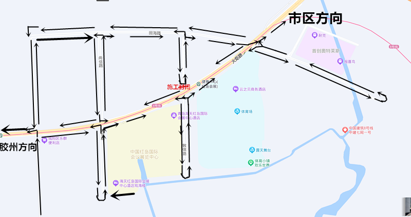 演唱會(huì)結(jié)束散場(chǎng)時(shí),車輛向西行駛可從火炬路轉(zhuǎn)至安和路進(jìn)青蘭高速,也可沿火炬路一直向西行駛進(jìn)膠州;向東行駛可沿火炬路轉(zhuǎn)至岙東路,也可沿火炬路一直向東行駛進(jìn)市區(qū)及城陽(yáng)區(qū)。