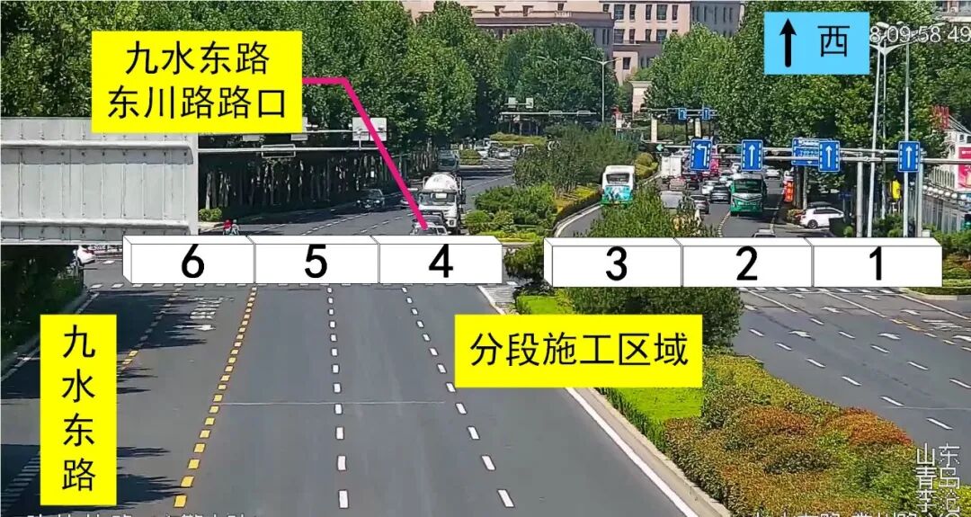 因九水東路東川路路口排水設(shè)施改造施工需要,計(jì)劃自2023年7月25日起至8月30日,非高峰期間橫穿九水東路占用路口由北向南分6期半封閉施工。請(qǐng)來往駕駛?cè)俗⒁馐┕^(qū)域相關(guān)交通標(biāo)志,謹(jǐn)慎駕駛,具體方案如下: