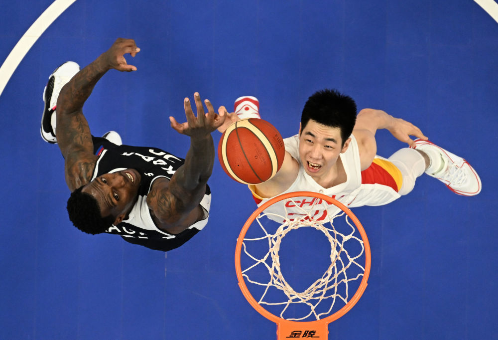 10月3日,中國(guó)隊(duì)球員朱俊龍(右)在籃下拼搶。當(dāng)日,在杭州亞運(yùn)會(huì)籃球男子四分之一決賽中,中國(guó)隊(duì)以84比70戰(zhàn)勝韓國(guó)隊(duì),晉級(jí)半決賽。新華社記者 孟永民 攝