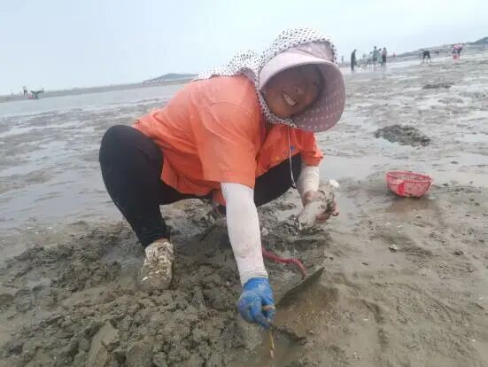 假期里,記者前往嶗山區(qū)會場趕海園,也體驗了一把趕海的樂趣??紤]到假期外出旅游人太多,王女士一家四口選擇留在青島過節(jié)。之前在手機上看到抓蟶子的視頻,王女士和丈夫都感到很有意思,于是在10月3日前往會場趕海。提前做足了功課,王女士帶了一瓶鹽、鐵刮子等工具,和家人打配合抓蟶子。記者見到他們時,筐子里已經(jīng)有了10多只蟶子?!拔覄傞_始跟著網(wǎng)紅小視頻學,后來跟著職業(yè)趕海人學了幾招?;疽I就是用鐵刮子薄薄刮開灘涂,看到有洞,趁洞口彌合前趕緊撒鹽,等著蟶子一露頭,立刻薅住,基本就有了?!蓖跖空f。記者也按照王女士所說的動作要領體驗了一番,只要耐心、專注、眼疾手快,不一會就能抓到一只蟶子。