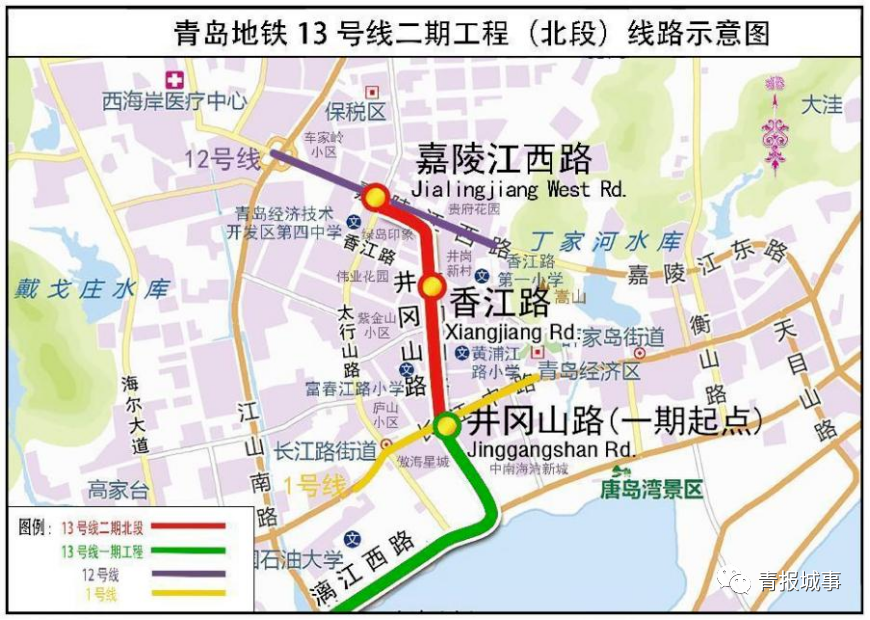 地鐵13號線是西海岸新區(qū)開通的首條地鐵線路。2018年12月,13號線開通時范圍包括井岡山路站至董家口火車站共21個車站,通車里程67公里。因嘉陵江西路站、香江路站受其他線路規(guī)劃影響,當時不具備開通條件,納入13號線二期北段建設管理。