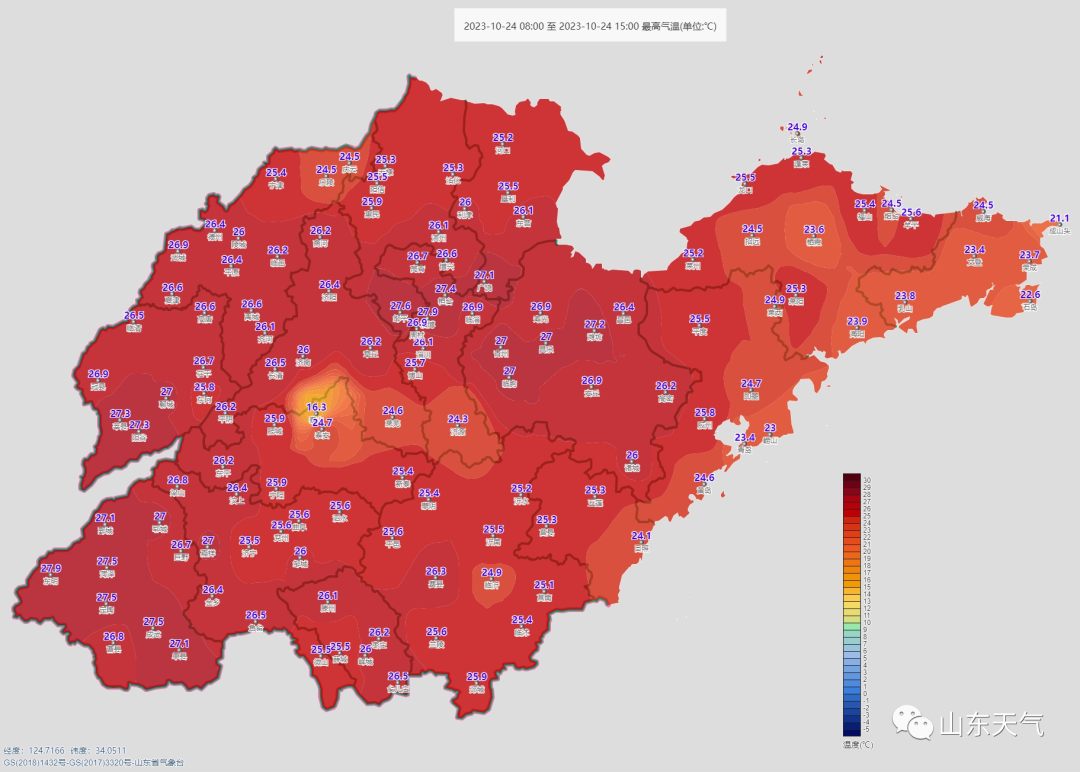 最高氣溫:魯中山區(qū)和沿海地區(qū)21℃左右,其他地區(qū)24℃左右。