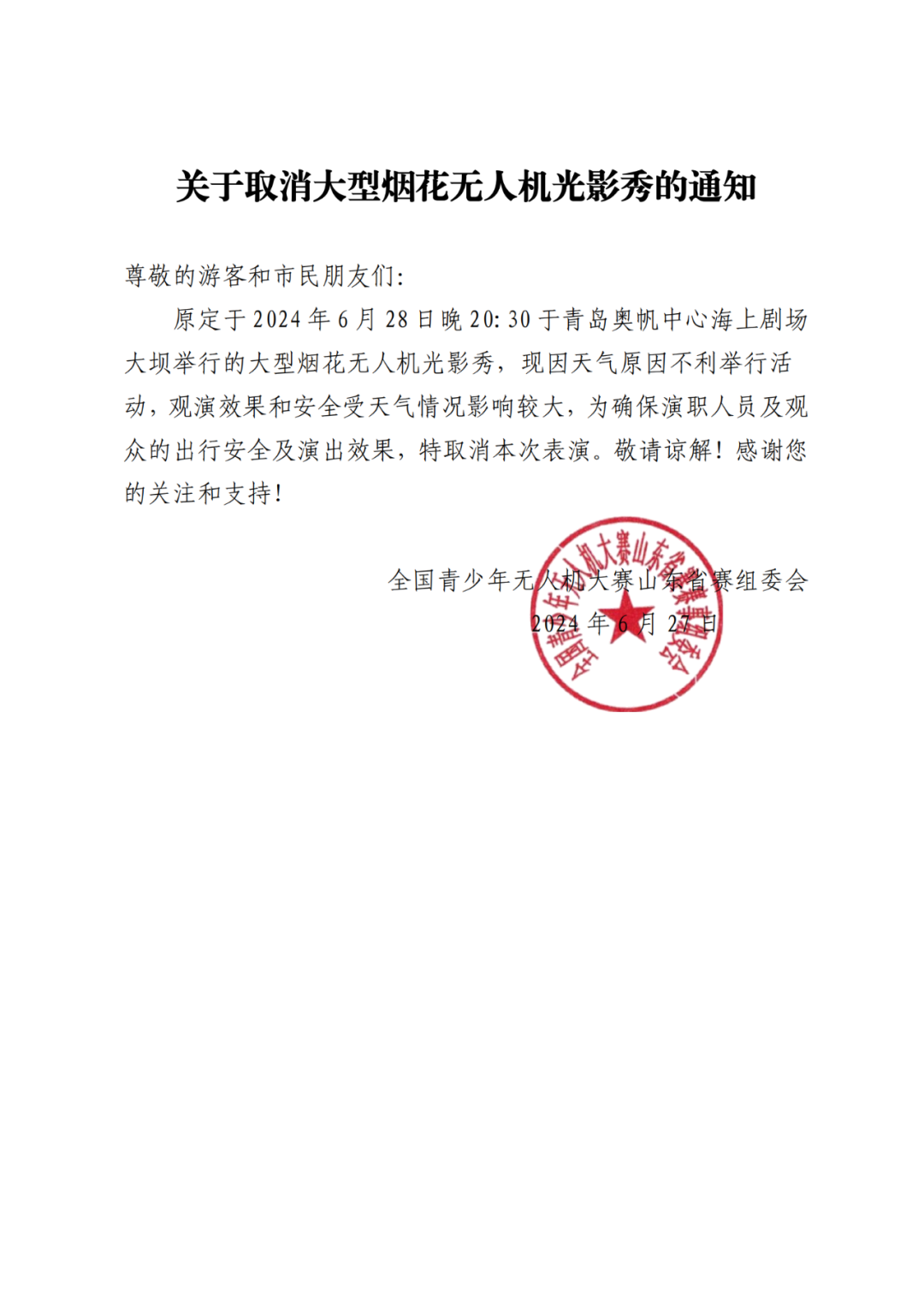 別跑空!今晚奧帆中心大型煙花無人機(jī)光影秀因天氣原因取消