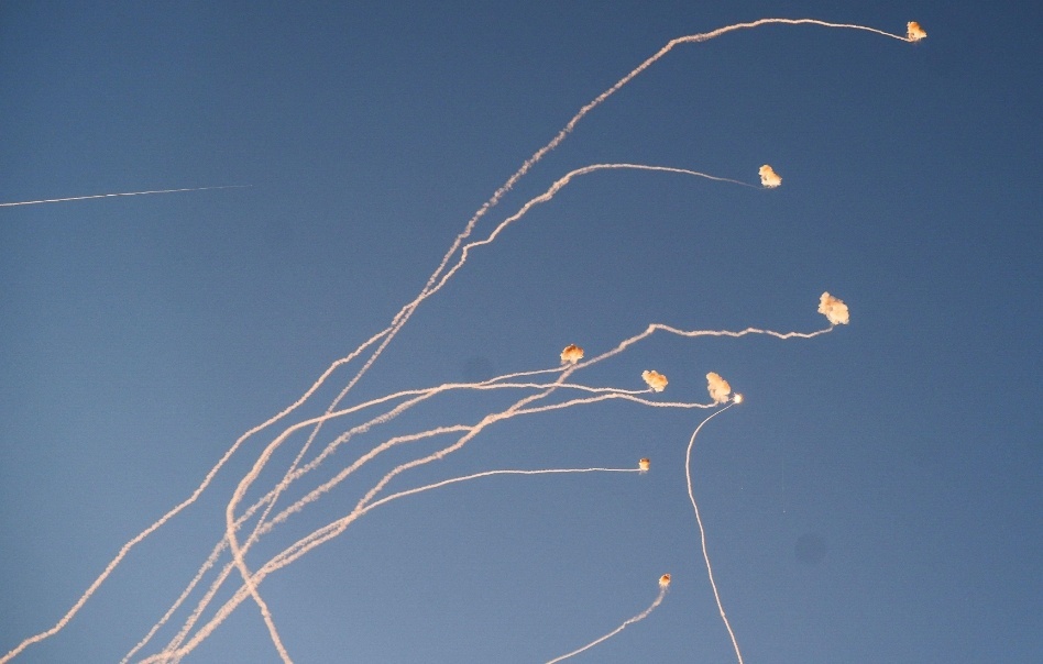 以色列防空系統(tǒng)攔截自黎巴嫩方向發(fā)射的火箭彈(資料圖)