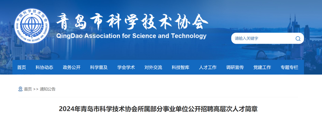 根據(jù)《事業(yè)單位人事管理條例》和《事業(yè)單位公開招聘人員暫行規(guī)定》等文件要求,青島市科學技術(shù)協(xié)會所屬部分事業(yè)單位面向社會公開招聘高層次人才。