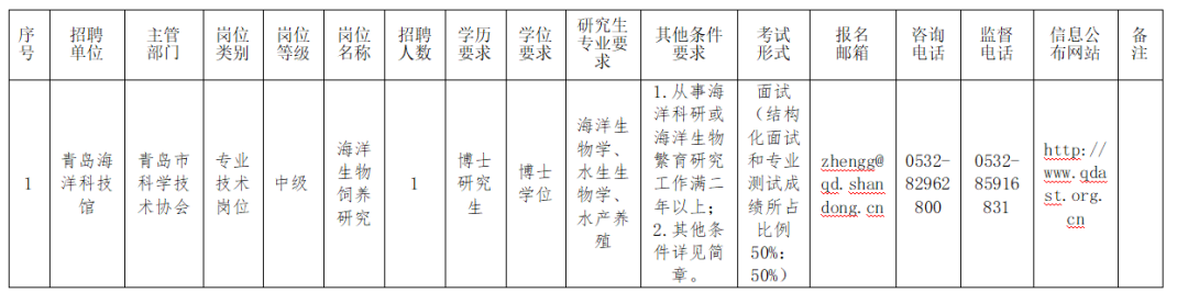 青島市科學技術(shù)協(xié)會所屬部分事業(yè)單位公開招聘高層次人才崗位表: