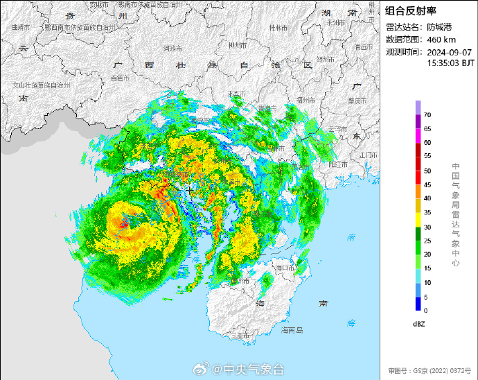 今年第11號臺風“摩羯”(超強臺風級)的中心已于今日15時30分前后在越南廣寧省南部沿海登陸,登陸時中心附近最大風力有17級(58米/秒),中心最低氣壓925百帕。