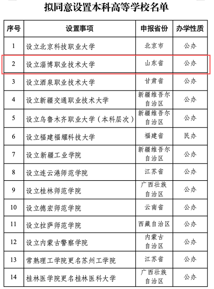 教育部網(wǎng)站1月13日公示擬同意設(shè)置北京科技職業(yè)大學(xué)等14所本科高校,其中山東一所。原文如下: