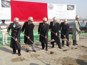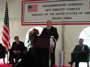 今天,在位于亮馬河邊的北京第三使館區(qū)方圓10英畝的空曠工地上,在暖意融融的北京初春時(shí)節(jié),美國歷史上造價(jià)最為昂貴的大使館正式破土動工。這座新館預(yù)計(jì)耗資2.75億美元,為美國國務(wù)院在海外投資建設(shè)的最龐大的項(xiàng)目。