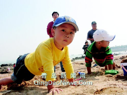 半小時后,他們拎著“戰(zhàn)利品”回到沙灘,“現(xiàn)在比賽搭房子,看誰的房子漂亮!”史志璋和曲穎華兩名老人也加入了“戰(zhàn)團”。半小時后,兩家的房子全都建好了,當(dāng)“評委”的姥爺史志璋宣布雙方打了個平手,又讓加賽一輪:兩個孩子比比誰的泳姿好。兩個孩子當(dāng)起了“旱鴨子”,在沙灘上比劃游泳姿勢,結(jié)果仍是難分高下。時間在笑聲中飛快溜去,孩子們的肚子開始“抗議”,中午12時許,一家人“搬師”飯店聚餐。記者聶向鋒攝影報道
