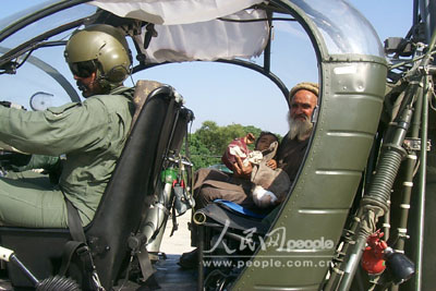 人民網伊斯蘭堡10月9日電 記者陳一鳴報道:據來自巴基斯坦地震救援部門的消息,9日巴基斯坦各地的救援工作仍在緊張進行。巴基斯坦總理肖卡特·阿齊茲主持特別內閣會議后表示,巴基斯坦政府已經劃撥50億盧比(約8300萬美元)的資金,以緊急救助強烈地震中受災的民眾。圖為巴基斯坦軍方使用直升飛機,轉移在地震中被困的災民。