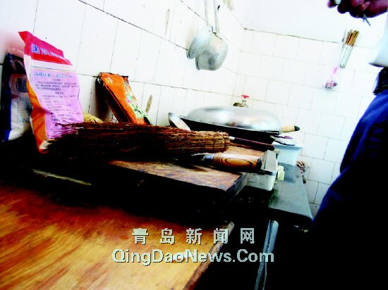 記者穿過三間教室,順著狹窄的樓梯走上二樓,來(lái)到僅容一人站立的廚房。里面一團(tuán)糟,刷碗的工具隨意放置,案臺(tái)到處都是油污,鍋碗瓢盆零亂地堆在一角。