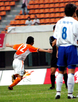賽前,謝峰對于淘汰申花信心很足!拔覀兛松昊ǎ瑳]問題!”然而,隊員的失誤卻讓比分變成了1比2,看著時間一分一秒地過去,謝峰終于做出了換人調(diào)整——馬里科換下忻峰,將李瑋峰推到鋒線。這一招,讓健力寶的防線突然穩(wěn)固起來。奇跡出現(xiàn)在最后1分鐘,周挺的遠射讓申花癱倒在地。那一瞬,謝峰興奮地跳了起來,和孟慶森緊緊擁抱在一起。他甚至留下了淚水!疤兄x我的隊員了。最近幾年,這是我們第一次在兩度落后的情況扳平比分,真的非常不容易!”
