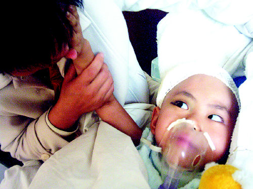 膠南5歲女孩雨婷墜樓昏迷,母親劉洪蕾半個(gè)月執(zhí)著呼喚昨日迎來奇跡。昨天當(dāng)小雨婷睜開雙眼聽到媽媽的抽泣后,她伸出手拭去了媽媽眼角的淚水,然后說:“媽媽,不哭,我就快———好了!睋(jù) 大夫介紹:目前小雨婷已脫離危險(xiǎn),顱內(nèi)淤血正在逐步清除。記者趙玉勛攝