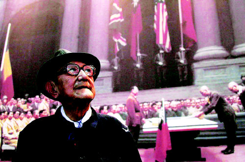 括臺(tái)灣同胞在內(nèi)的全體中華兒女長(zhǎng)期抗擊日本侵略者的勝利成果。    臺(tái)灣被割讓到光復(fù)這段歷史證明,臺(tái)灣從來(lái)就不是一個(gè)國(guó)家,而是中國(guó)領(lǐng)土不可分割的一部分。這一事實(shí)為國(guó)際法所確認(rèn),也為國(guó)際社會(huì)所公認(rèn)。據(jù)新華社    圖為一位長(zhǎng)者昨天在國(guó)家博物館觀看臺(tái)灣同胞抗日斗爭(zhēng)展覽。新華社發(fā)     |