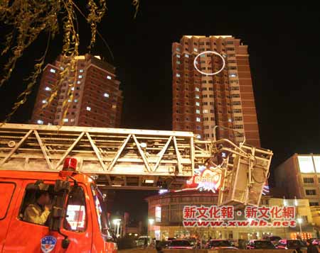消防云梯在樓下待命