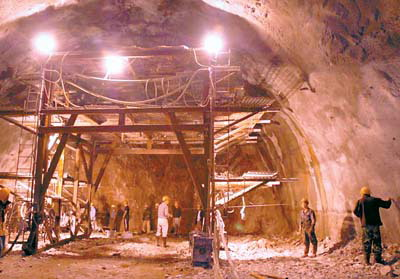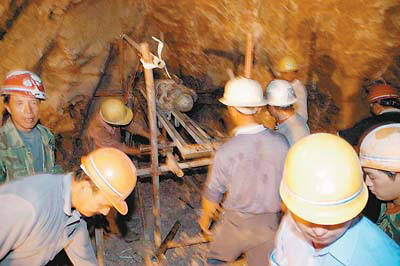 當日上午10時45分左右,一線傳來消息:搶救人員在塌方點外敲擊鋼管時、聽到里面有人在按喇叭!據(jù)此分析:首先是被困人員還活著;其次,能聽到喇叭聲,說明塌方段不長、塌方量不大,大約只有10多米左右。搶救人員結合隧道內(nèi)的情況再作進一步分析后認為:里面空氣足、供水沒問題,又沒有有毒氣體、沒有水淹可能,里面的圍巖也還算穩(wěn)固,被困人員完全可以支撐4~5天以上。