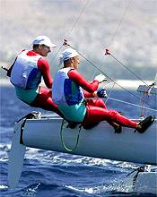 在2004年雅典奧運(yùn)會(huì)帆船帆板龍卷風(fēng)級(jí)比賽中,哈加拉/斯泰納切爾奪得冠軍