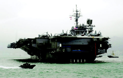 這是美國海軍“小鷹”號航空母艦在香港停靠補給時的資料照片(攝于2005年2月25日)。美國軍方27日透露,美國將于2008年在日本部署核動力航空母艦。這將是有史以來美 國第一次在日本部署核動力航母。另據(jù)不愿透露姓名的美國官員說,目前長期部署在日本的常規(guī)動力航母“小鷹”號將于2008年退役。新華社數(shù)碼傳真