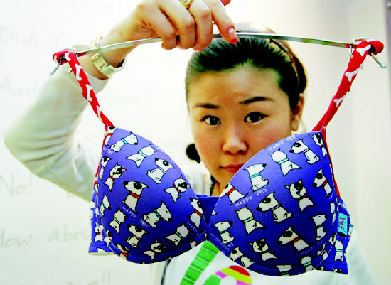 18日,韓國(guó)一個(gè)內(nèi)衣品牌的雇員在首爾展示一件印有狗圖案的內(nèi)衣。這件內(nèi)衣是為即將到來(lái)的農(nóng)歷狗年設(shè)計(jì)的。新華社發(fā)