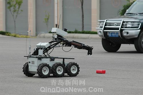 價(jià)值148萬(wàn)元的中型排爆機(jī)器人正在進(jìn)行可疑物排除