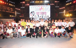 比賽演出結(jié)束后,市領(lǐng)導(dǎo)與紅歌星大賽獲獎(jiǎng)選手合影留念。(王群 攝)