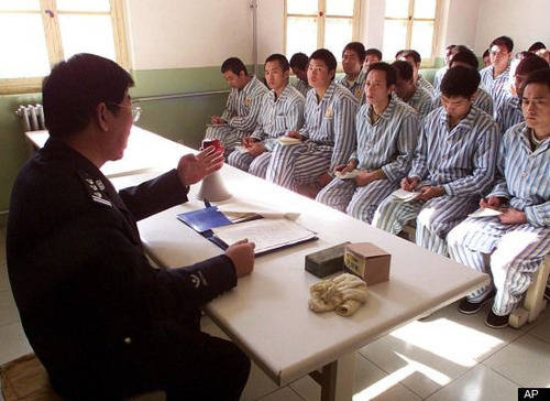 北京一家康復(fù)中心內(nèi),一名警察正向戒毒人員講解毒品的危害。