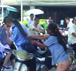 ????事發(fā)現(xiàn)場位于南京中央門立交橋下方東南角。事發(fā)時,這名電動三輪車女車主,上身穿著淺藍(lán)色短襯衫,下穿黑色長褲,騎著電動三輪車反道違章帶客,一下子撞到途經(jīng)此地的一騎自行車行人,隨后雙方發(fā)生糾紛引起交通不暢。正在附近巡邏的行人六大隊交警謝斌和兩名交通協(xié)管員趕到現(xiàn)場,謝斌發(fā)現(xiàn)女子張某所騎這輛電動三輪車無牌無證,屬于非法營運(yùn),加上反道違章等,于是按規(guī)定要暫扣張某的電動三輪車進(jìn)行調(diào)查。