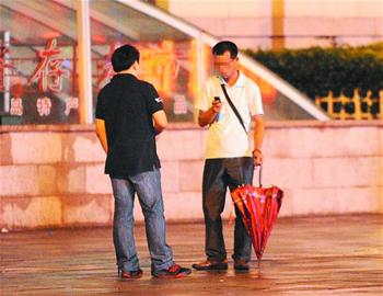 ????昨晚7時,記者來到火車站廣場,以學(xué)生的身份來到“黃牛”較為活躍的東售票廳,由于大廳內(nèi)有鐵路警察執(zhí)勤,記者逗留10分鐘內(nèi)并沒有黃牛上前搭訕。記者故意表現(xiàn)出因為沒買到車票而顯得很煩躁。當(dāng)記者剛剛走出售票廳時,一名男子鬼鬼祟祟地湊到記者身邊,“兄弟,來火車站做什么? ”“你說我來火車站做什么? ”記者反駁了一句后,故意離開了現(xiàn)場。記者注意到,那名男子徑直走向廣場上的另一名中年男子,兩人嘀咕幾句后,中年男子笑著朝記者走來。 “兄弟,到哪里去?。科辈缓觅I吧?我們可以幫你,你多給點錢就是了。 ”當(dāng)記者表示可以考慮的時候,中年男子讓記者走遠(yuǎn)一點詳談,并帶著記者朝著火車站地下商場附近方向走去。當(dāng)走到一半的時候,中年男子又提出去火車站出站口附近詳談,那里人多,不容易引起鐵路警察懷疑。記者和中年男子兜了一大圈后,又回到售票廳門外約10米處,有了之前的交流,記者慢慢取得了該男子的信任。 “沒辦法啊,查得嚴(yán),只能和鐵警玩捉迷藏。 ”該男子無奈地說。