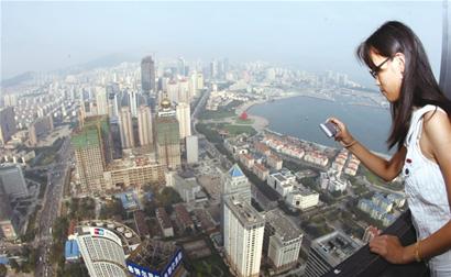 ????從51樓下電梯,步行兩層就到達(dá)了萬(wàn)邦中心制高點(diǎn)——停機(jī)坪。停機(jī)坪目前還只是個(gè)大約百余平米的水泥臺(tái)。按常理,海拔平均每升高100米,溫度就會(huì)降低0.6攝氏度。但記者沒(méi)有“高處不勝寒”的感覺(jué)。由于天氣晴朗,加之地面水泥地反射,記者的臉上被曬出了汗,盡管風(fēng)比樓下大得多。萬(wàn)邦中心工作人員李先生說(shuō),如果是霧天,感覺(jué)就會(huì)截然相反。 東西南北景色各異 站在停機(jī)坪往四周俯瞰,山、海、城美景盡收眼底。東面五四廣場(chǎng)、奧帆基地等經(jīng)典美景,視線最佳時(shí)能看到嶗山山頂;西面,青島灣、八大峽,視線最佳時(shí)能看到薛家島;往北瞧,德式建筑、新建小區(qū)爭(zhēng)奇斗艷;向南望,海上落日、點(diǎn)點(diǎn)船帆如詩(shī)如畫(huà)。視線所及,高高低低的樓房像售樓處擺出的火柴盒模型,“威武”的電視塔也成了小矮個(gè),海面上船舶駛過(guò),留下一串串白色浪花。在這里,記者體驗(yàn)到的是“一覽眾山小”。