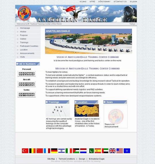 ????2010年10月10日20時30分,更新后的“安納托利亞之鷹”官網(wǎng)首頁下方放有中國國旗。其前為比利時國旗,內(nèi)文顯示該國空軍于2005年11月14日至25日參加了土耳其、比利時、以色列和美國四國空軍的“AE-05/4 ”聯(lián)合訓(xùn)練。