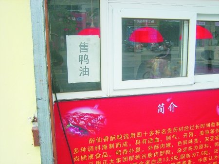 ????還有一些烤鴨店出售烤鴨油的廣告更為高調(diào)、醒目——