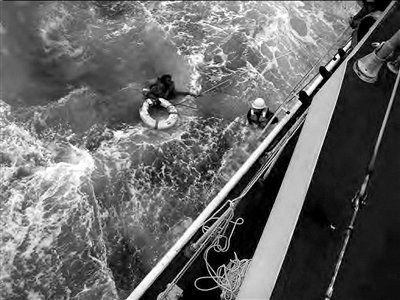 昨天,在日本南部西表島附近,日本海岸警衛(wèi)隊(duì)成員營救幸存的中國船員。新華社/路透