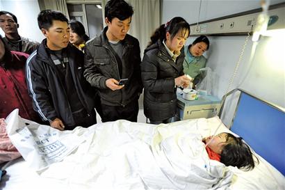 ????記者在急診觀察室見(jiàn)到了小周的父親,他的臉上滿是血痕,因?yàn)槊娌亢涂谇皇軅?,躺在?dān)架床上說(shuō)不出話來(lái)。從集裝箱貨車(chē)車(chē)輪間被拖出的小周大伯,因?yàn)轭^部受創(chuàng)腦出血,正在手術(shù)室里接受開(kāi)顱手術(shù),現(xiàn)在情況仍然非常危急。小周告訴記者,肇事司機(jī)墊付了大伯急診的押金后離開(kāi)醫(yī)院,剛才醫(yī)院通知需要大筆手術(shù)費(fèi)用,他們已經(jīng)通過(guò)交警聯(lián)系肇事司機(jī)前來(lái)交費(fèi)。(黃飛 于滈)